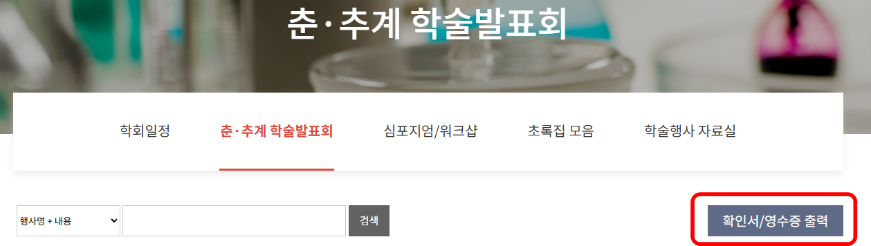 비로그인(로그아웃) 상태에서 학술행사-춘·추계 학술발표회-확인서/영수증 출력