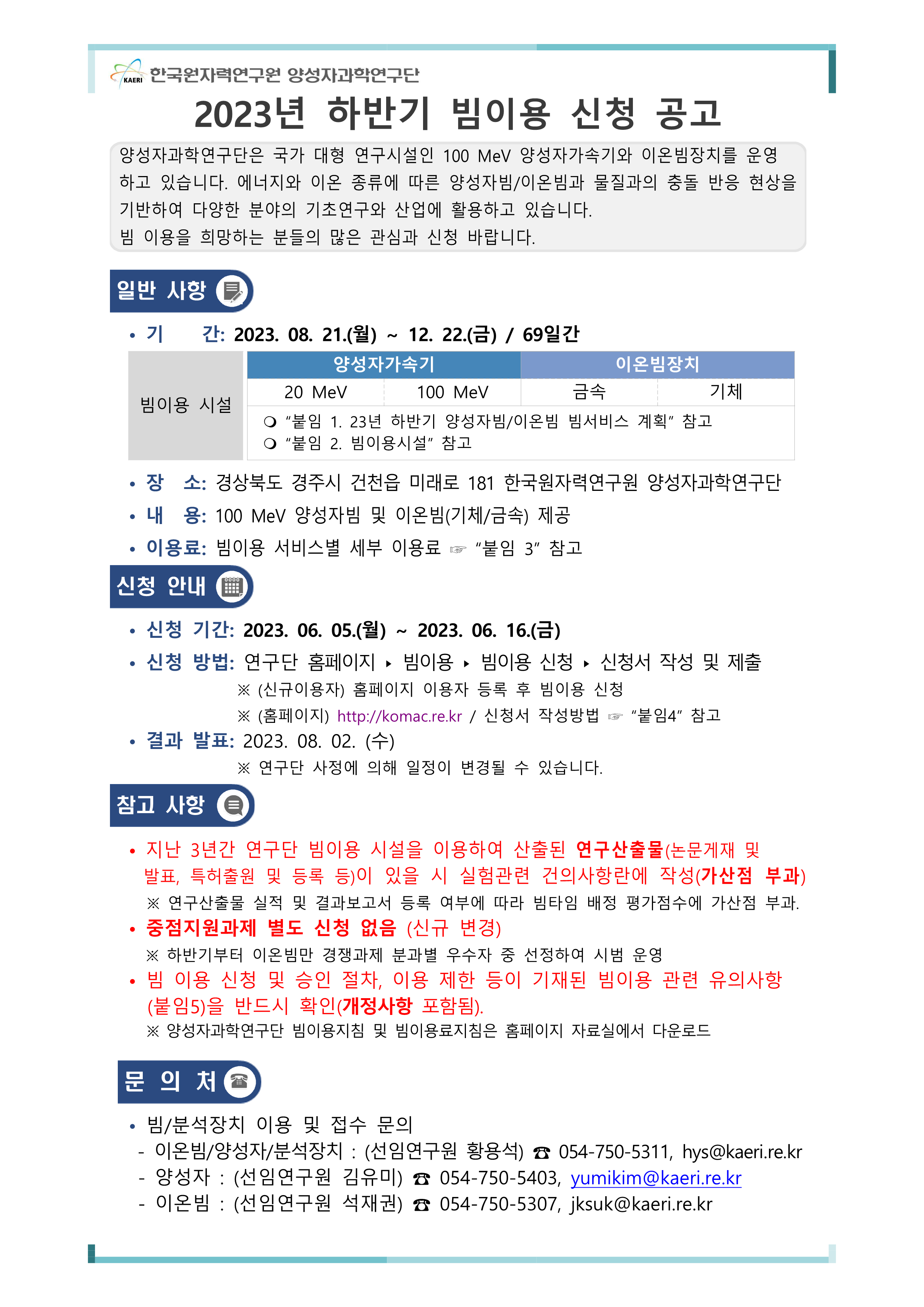 2023년도 양성자과학연구단 하반기 빔 이용 신청 공고문.pdf (다운 269회)
