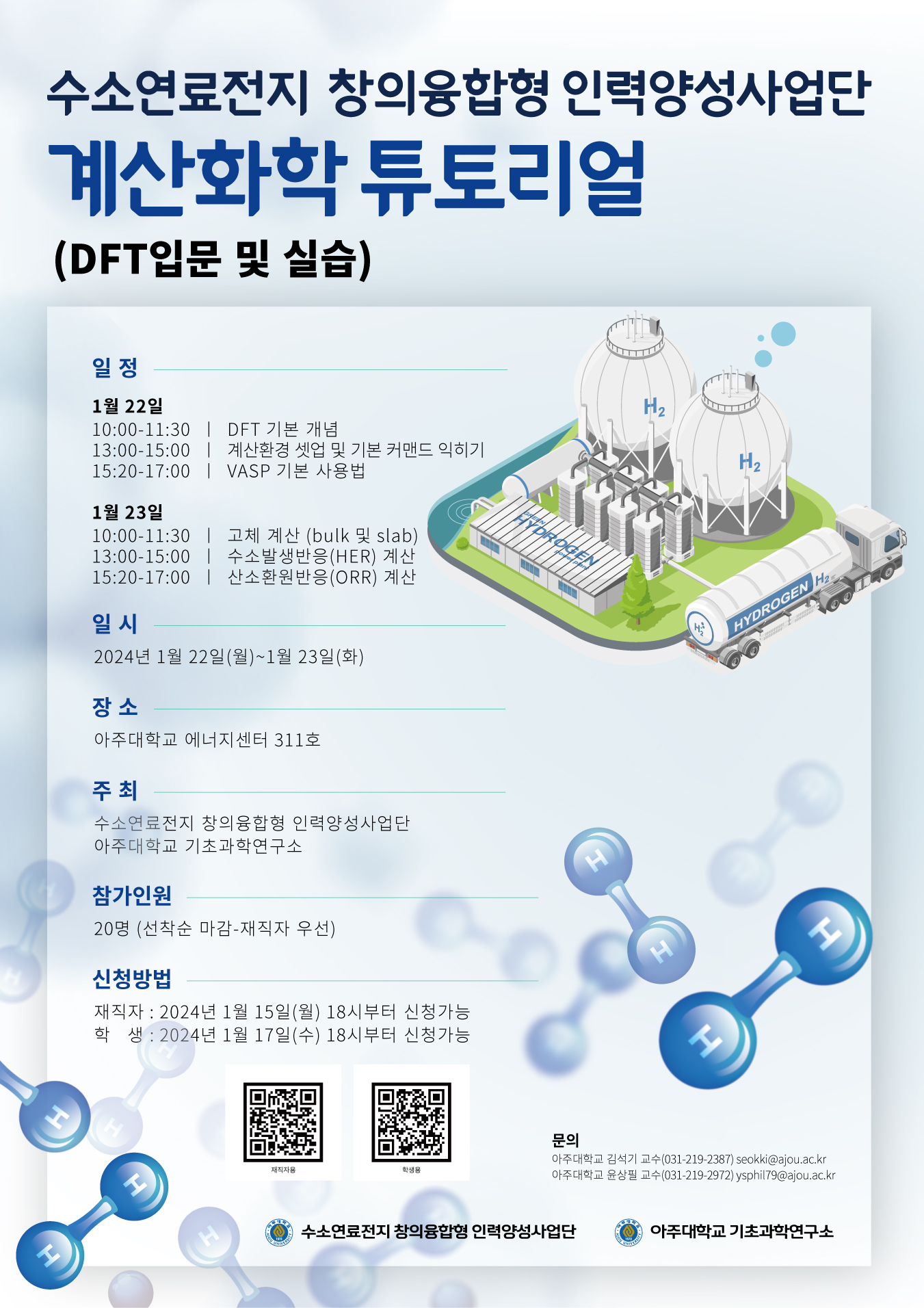 [수소연료전지창의융합형인력양성사업단] 계산화학 튜토리얼 개최 안내