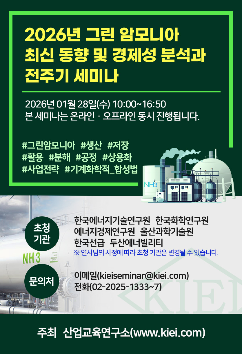 [산업교육연구소]2026년 그린 암모니아 최신 동향 및 경제성 분석과 전주기 세미나